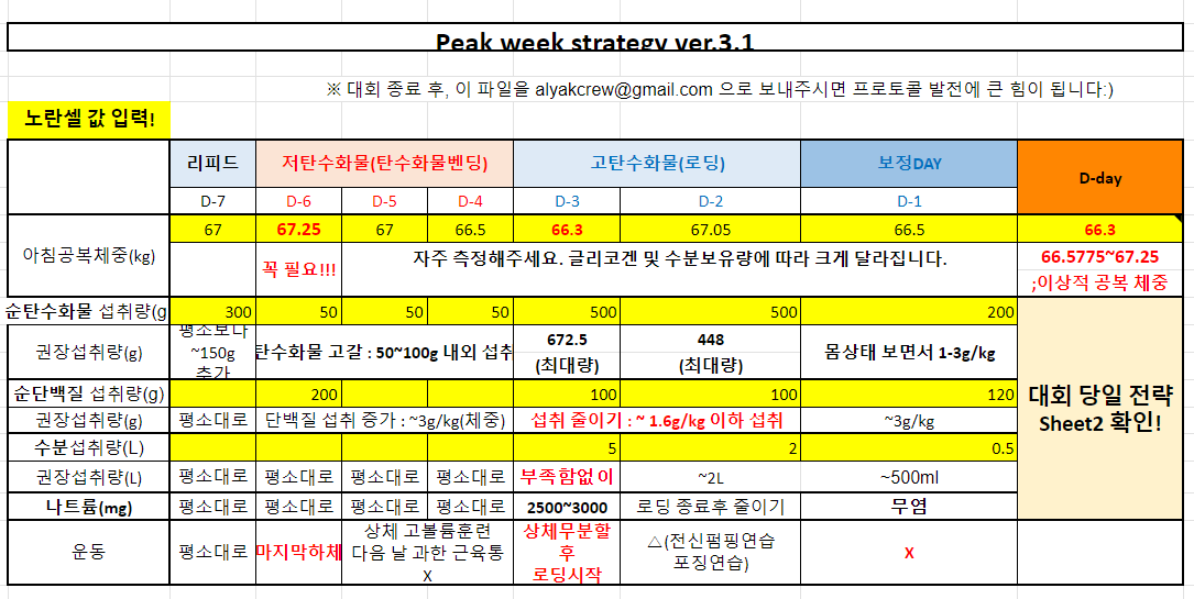 피크위크란 마지막 1주일에 진행하는 식단이다.